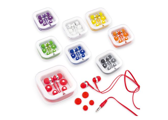 ABS › Audífonos intraaurales, con plug estándar 3,5 mm. Incluye organizador con clip para transportarlos y